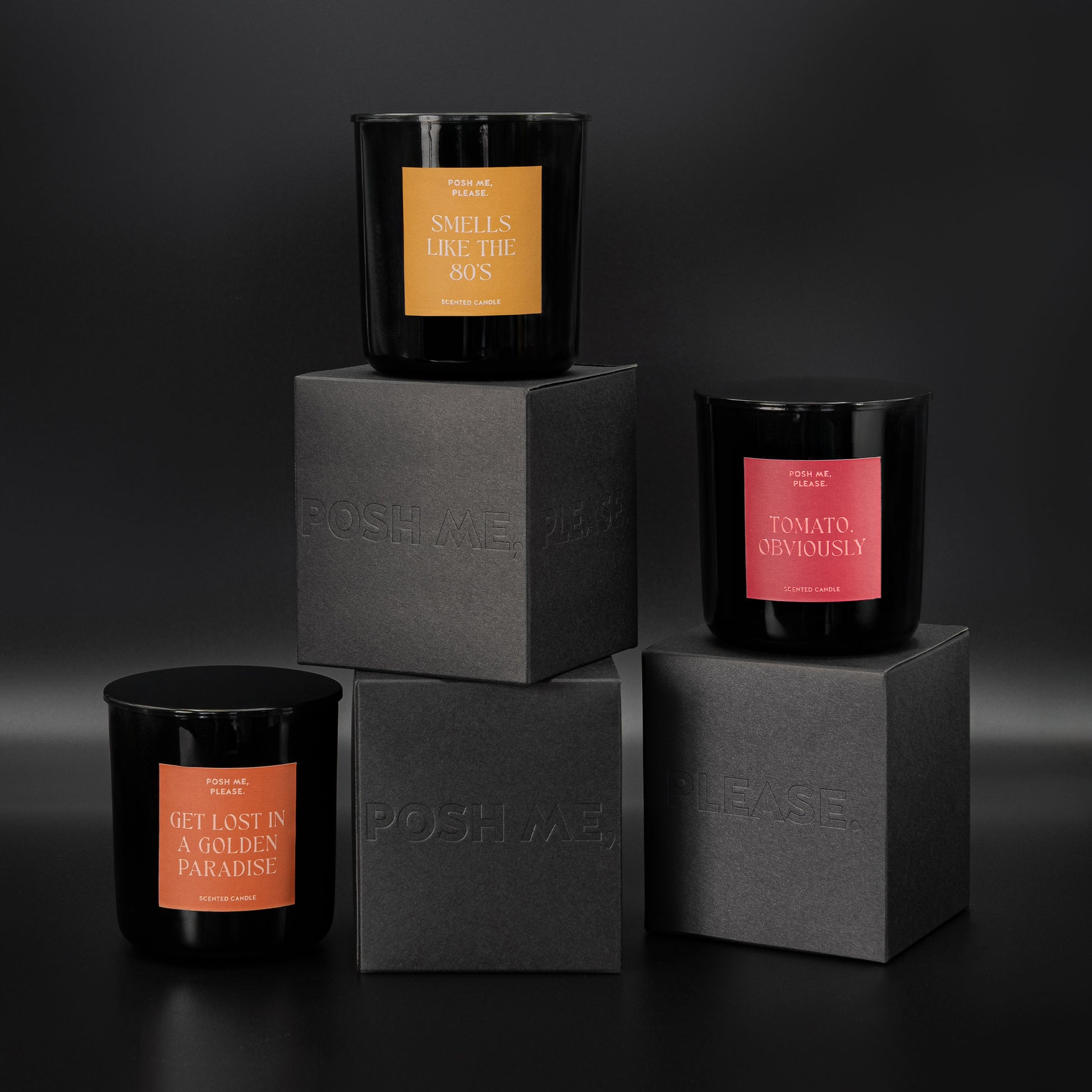 Its minimalist and timeless aesthetic is reflected in the sleek black glossy glass vessel, paired with a black metal lid, elevating each candle into a true object of desire.