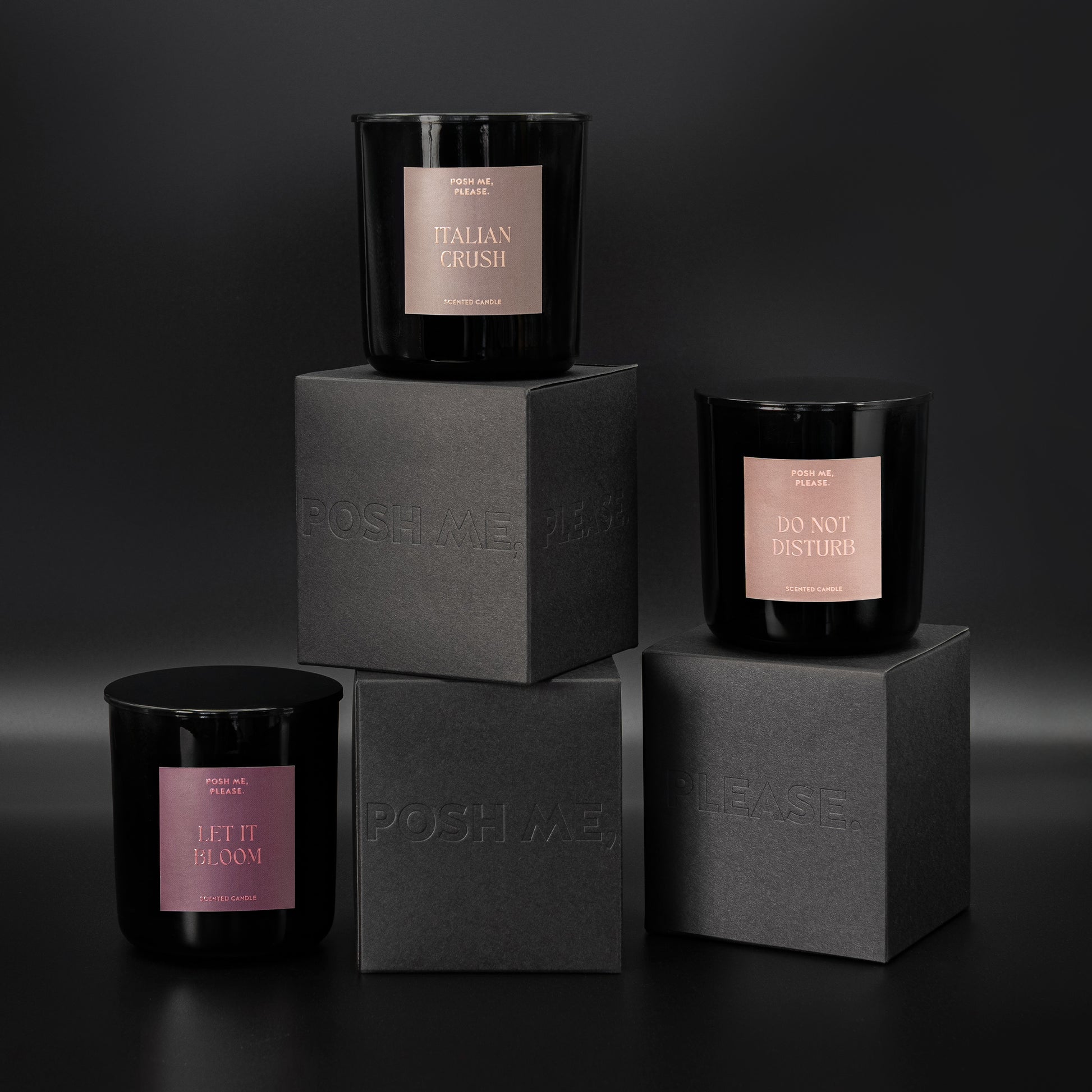 The Essentials Trio, our core candles, curated to express the essence of POSH ME, PLEASE. through timeless design, exquisite scents, and a quietly luxurious glow.